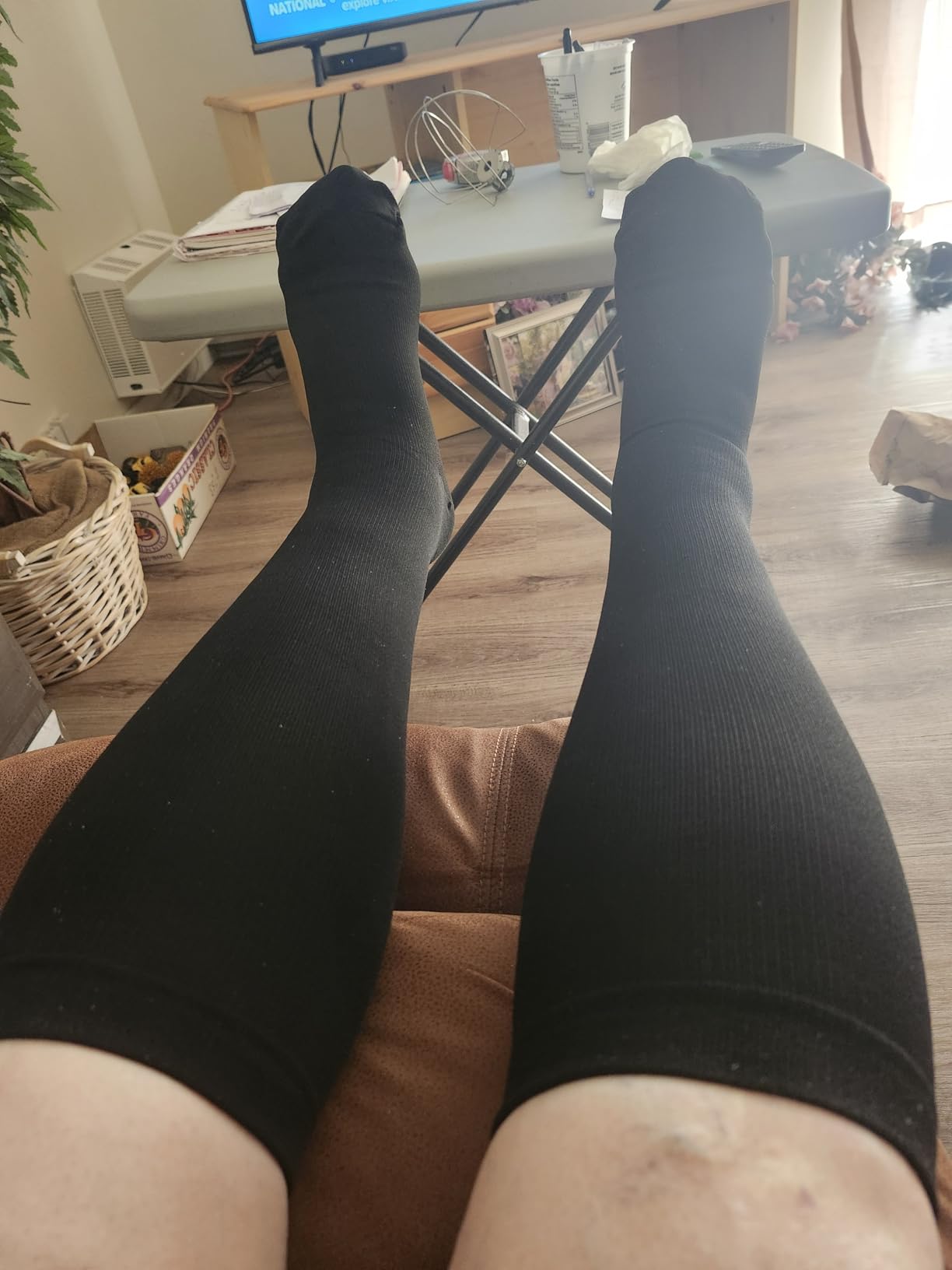 Le nostre calze a compressione stimolano la circolazione sanguigna e riducono l'affaticamento delle gambe. Meno gonfiore, più comfort, da mattina a sera.