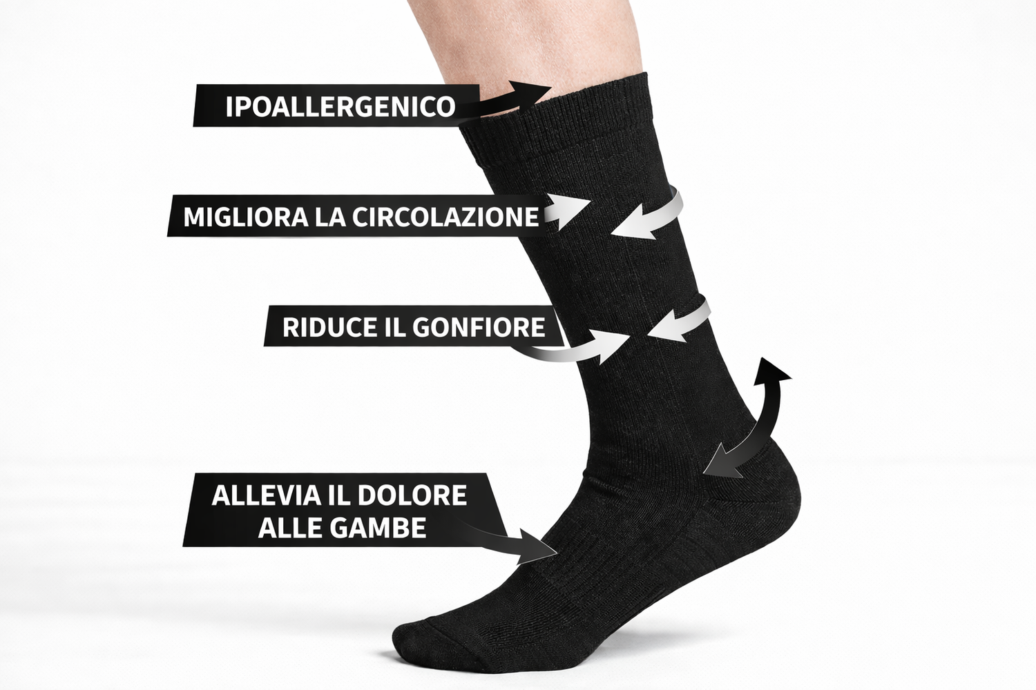 Sono progettati per migliorare la circolazione, ridurre la sensazione di gambe pesanti e offrire maggiore comfort nella vita quotidiana.